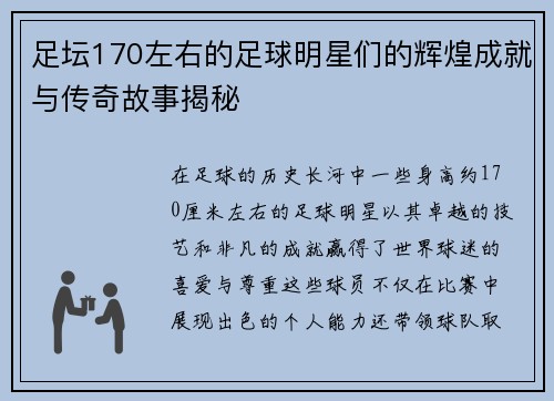 在足球的世界里,明星球员们往往被认为是富有的象征,他们的薪水和代言收入让人羡慕不已。然而,在这个光鲜亮丽的背后,却隐藏着一些鲜为人知的故事,其中包括一些贫穷的明星球员。他们或许曾经辉煌一时,但因种种原因,最终沦落至贫困。本文将揭晓足球界最贫穷的明星球员究竟是谁,并探讨他们背后的故事与经历。我们将从个人背景、职业生涯、经济危机以及重生之路四个方面详细分析这一话题,让我们一起走入这些球员的人生历程。 ...